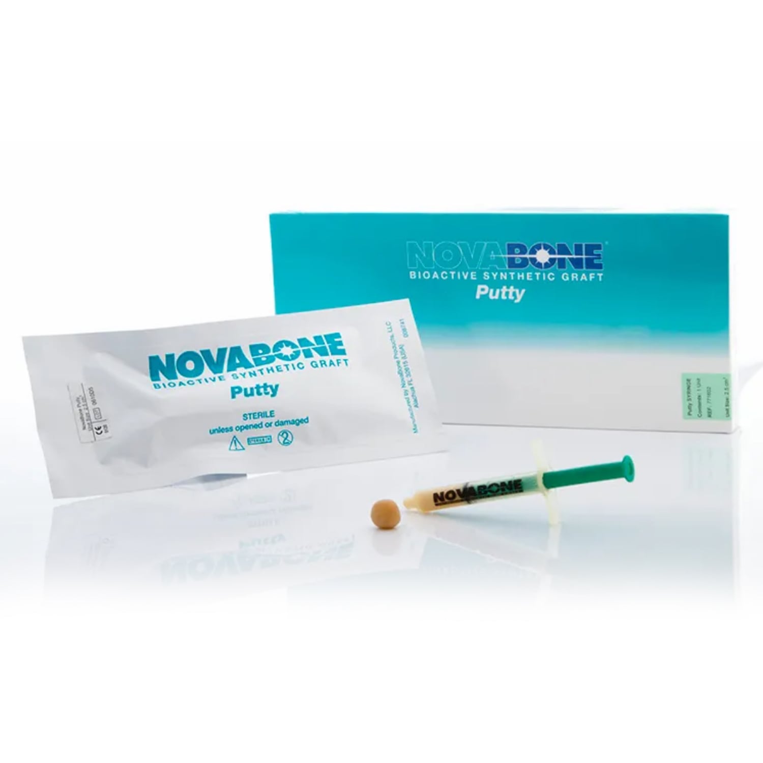 NovaBone is packaged in sterile thermoformed packs, as well as syringes for controlled delivery of bone graft.