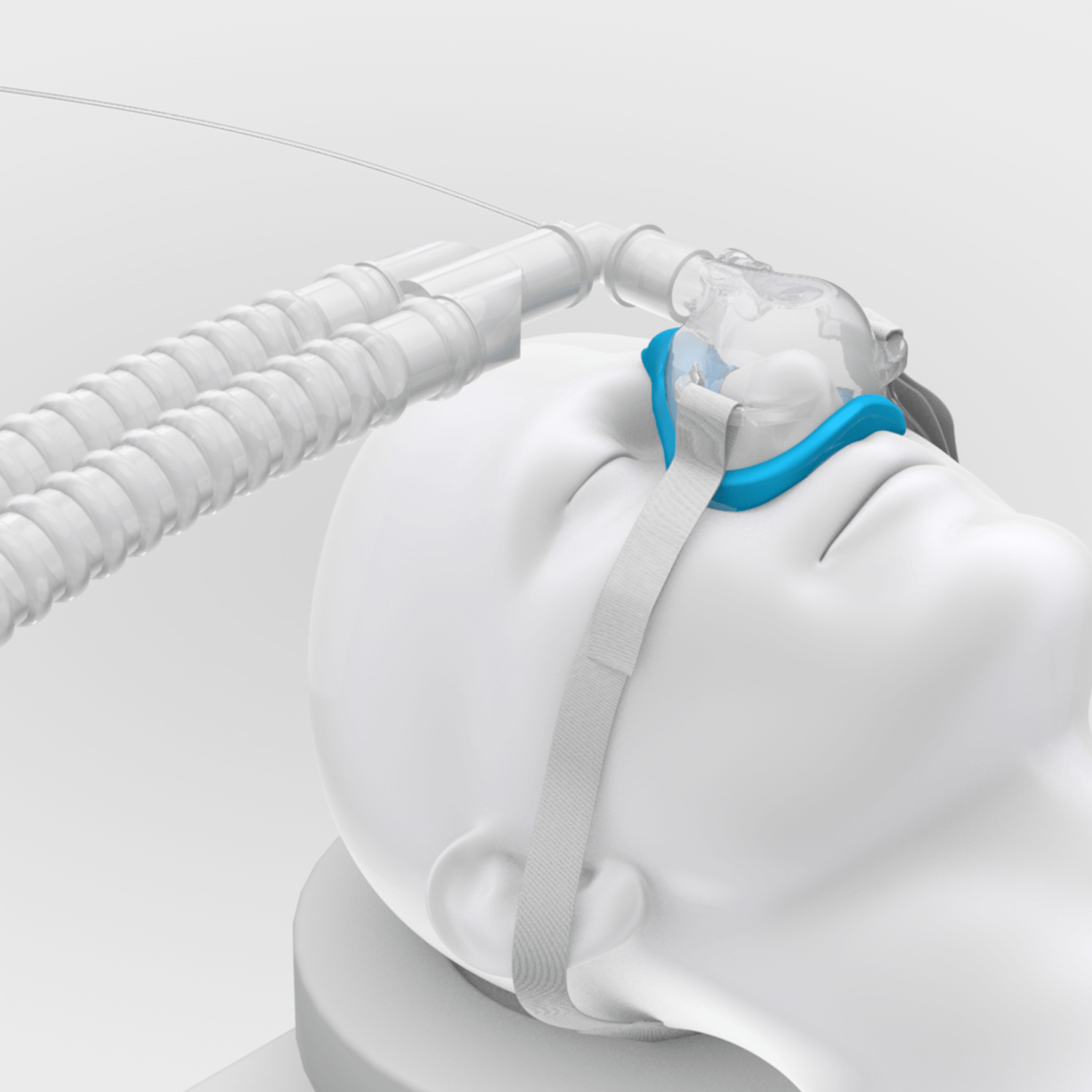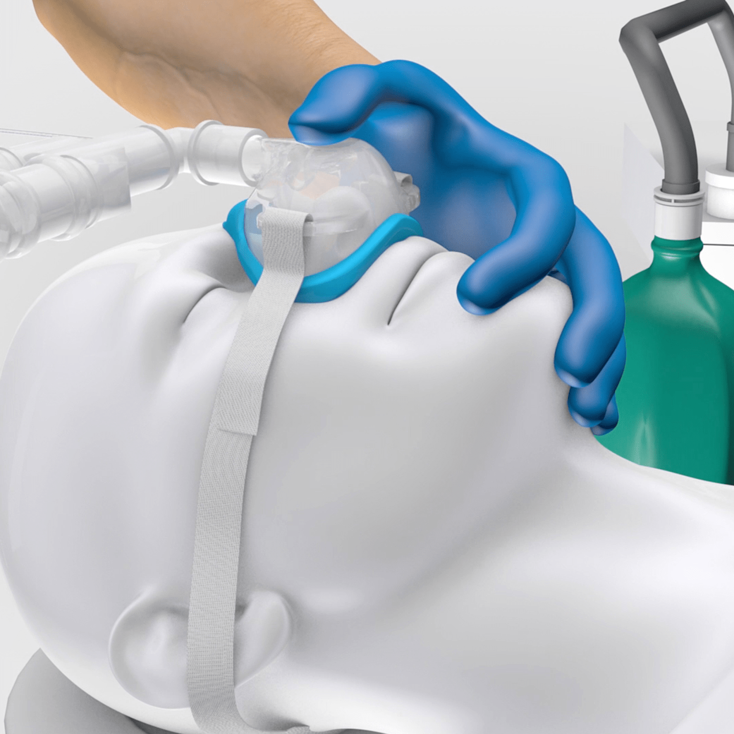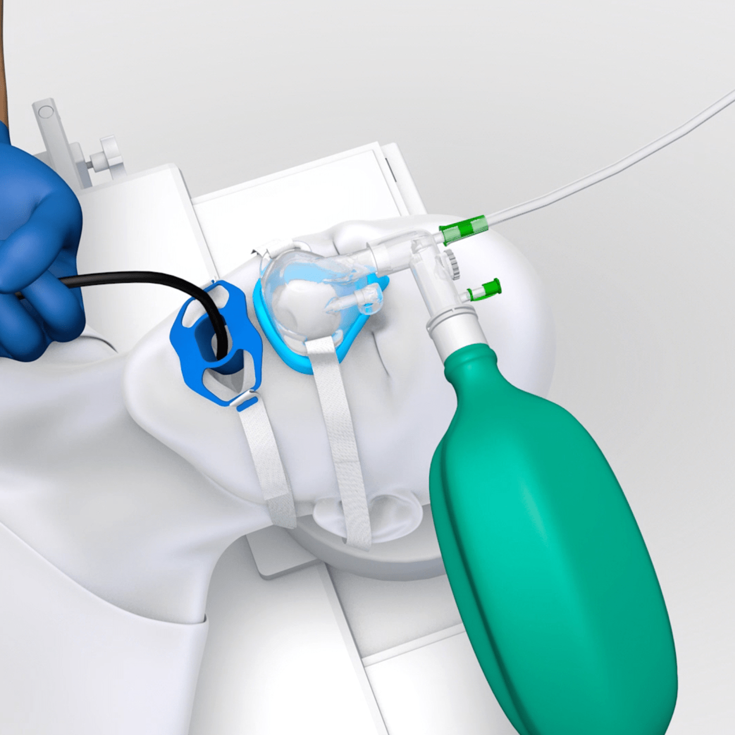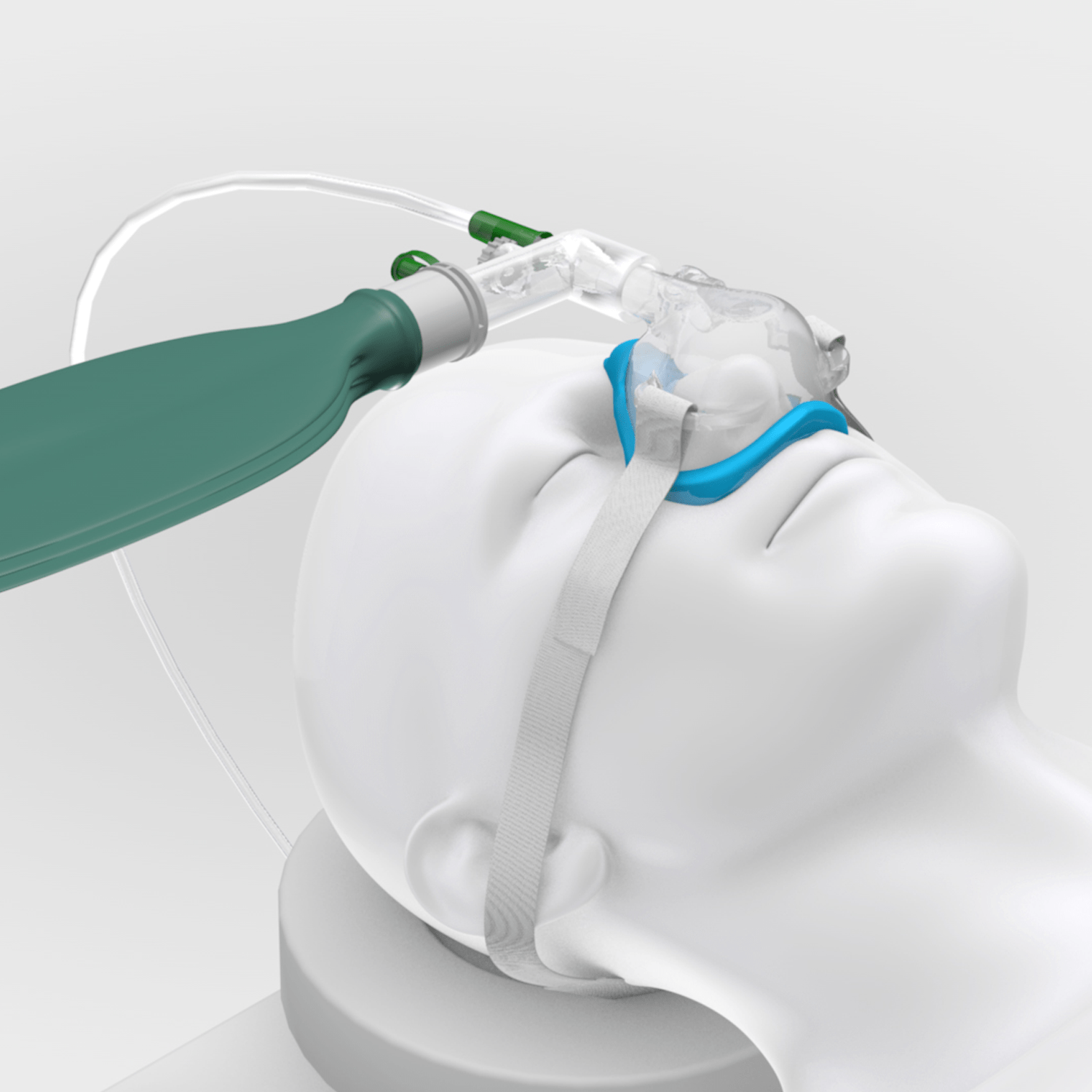 The SuperNO2VA nasal PAP ventilation system uses the flow from any oxygen source. Delivers positive airway pressure to stent open the upper airway, allowing for the preoperative delivery of positive pressure ventilation and oxygen for patients with a decreased level of consciousness. The SuperNO2VA™ nasal PAP ventilation device is available in medium and large sizes and is offered as a standalone mask with a head strap and as a system, kitted with a hyperinflation bag. These configurations offer flexibility as it allows the SuperNO2VA™ nasal PAP ventilation device to be used with either an anesthesia machine or with only an oxygen flow meter.